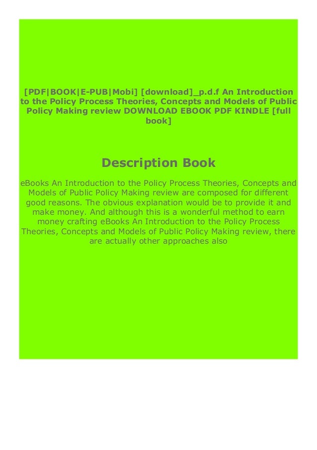 Read Best Book Online An Introduction To The Policy Process Theories